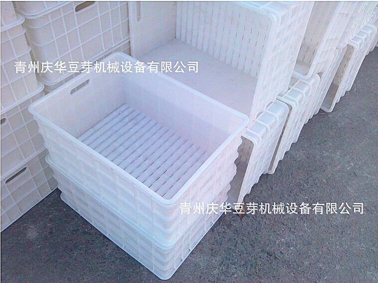 6、豆芽機(jī)結(jié)構(gòu)特點(diǎn)及功能(可根據(jù)客戶需要訂做): 4)周轉(zhuǎn)箱的外徑尺寸:0.61m*0.44m*0.26m(長寬高),特點(diǎn):波浪底,食品級的環(huán)保LLDPE材料,無味,結(jié)實(shí)不變形,不變色,承載強(qiáng)度大,長條形排水孔,豆芽不堵孔,不積水存水,透水效果好,防止?jié)穸冗^大而導(dǎo)致爛牙。